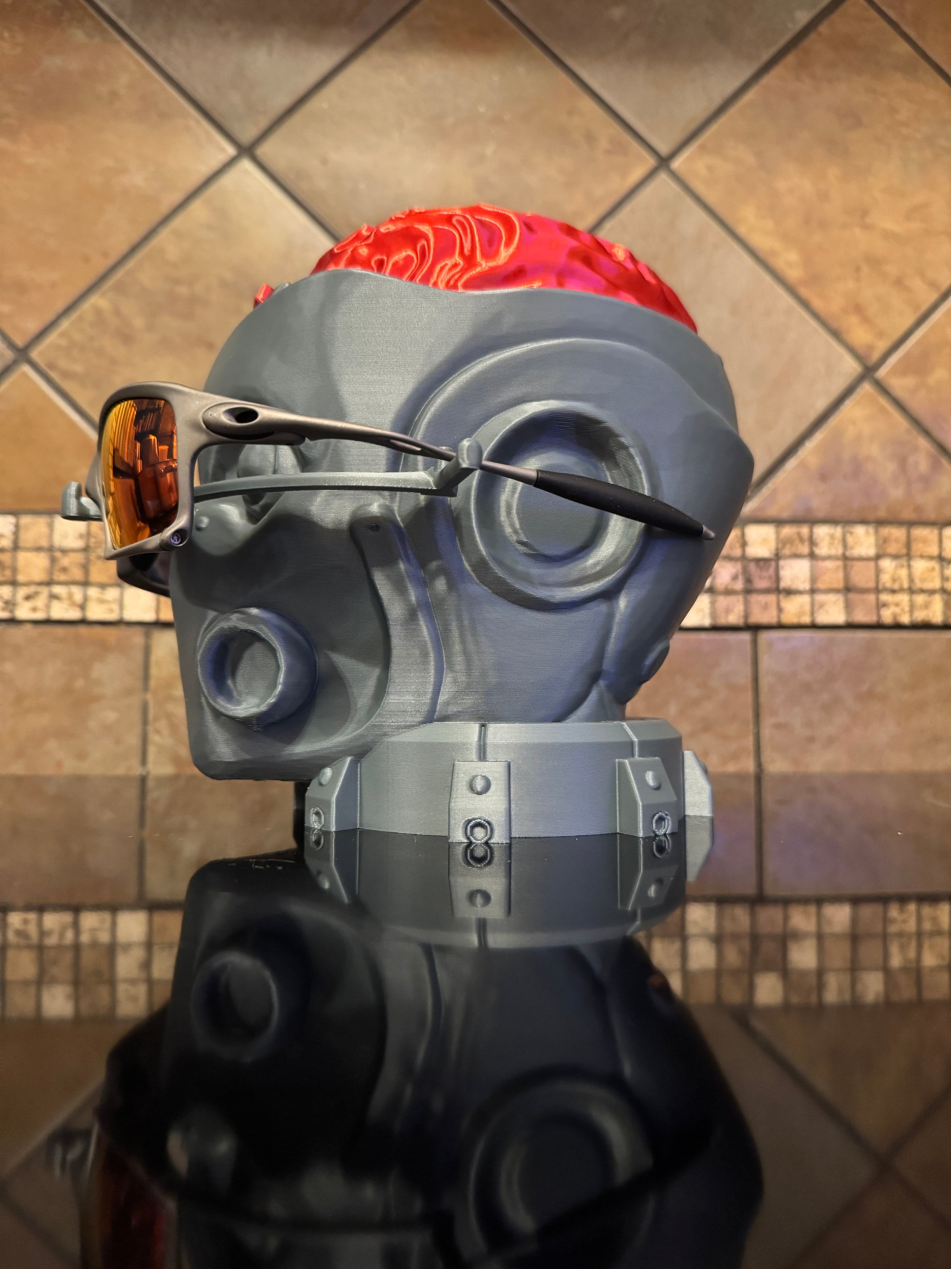 This modern reinterpretation is FDM created and finished for a unique, futuristic look that pays homage to the original Oakley design language. Perfect for showcasing sunglasses, eyewear collections, or as a bold decor piece for your desk, shelf, or man cave.