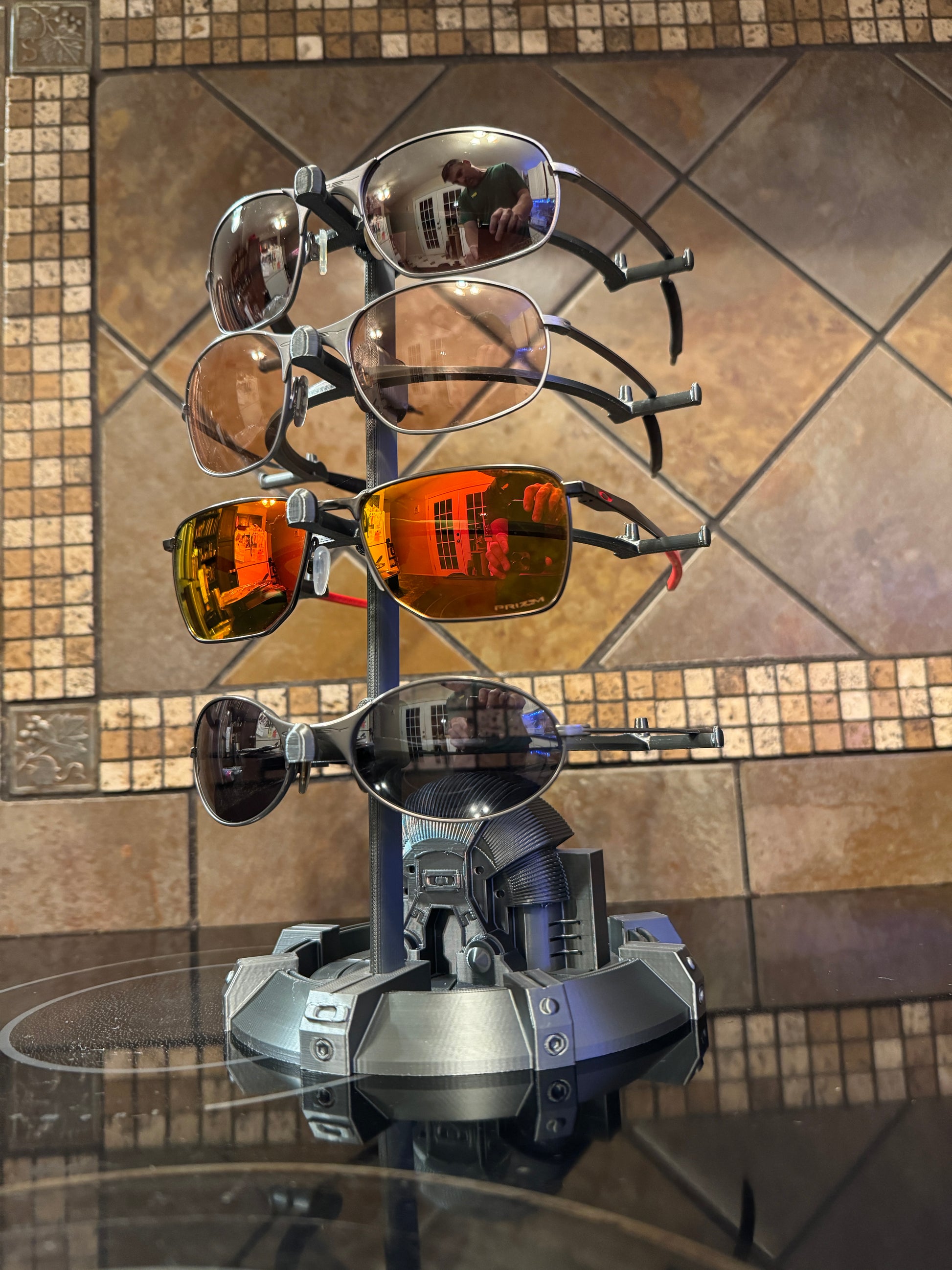 Versatile Use: Works great in display cases, shelves, or as a standalone showcase piece Condition: Brand new – made to order Note: This is a custom-made item inspired by Oaklie design language and is not an official Oaklie product. Bring the Oaklie bunker headquarters vibe into your collection room or office with this 4-tier sunglasses stand – a true centerpiece for any Oaklie enthusiast.