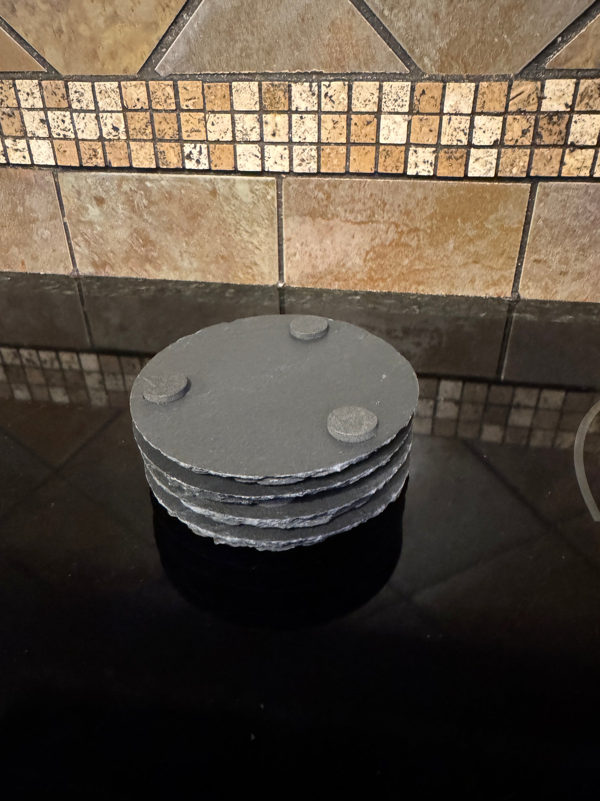 Description: Upgrade your space with this set of 4 Slate Oaklie Logo Coasters “Hydra Pad.” Crafted with a bold, rugged look and measuring 4" in diameter, these coasters deliver both functionality and a mad science-inspired Oaklie aesthetic.